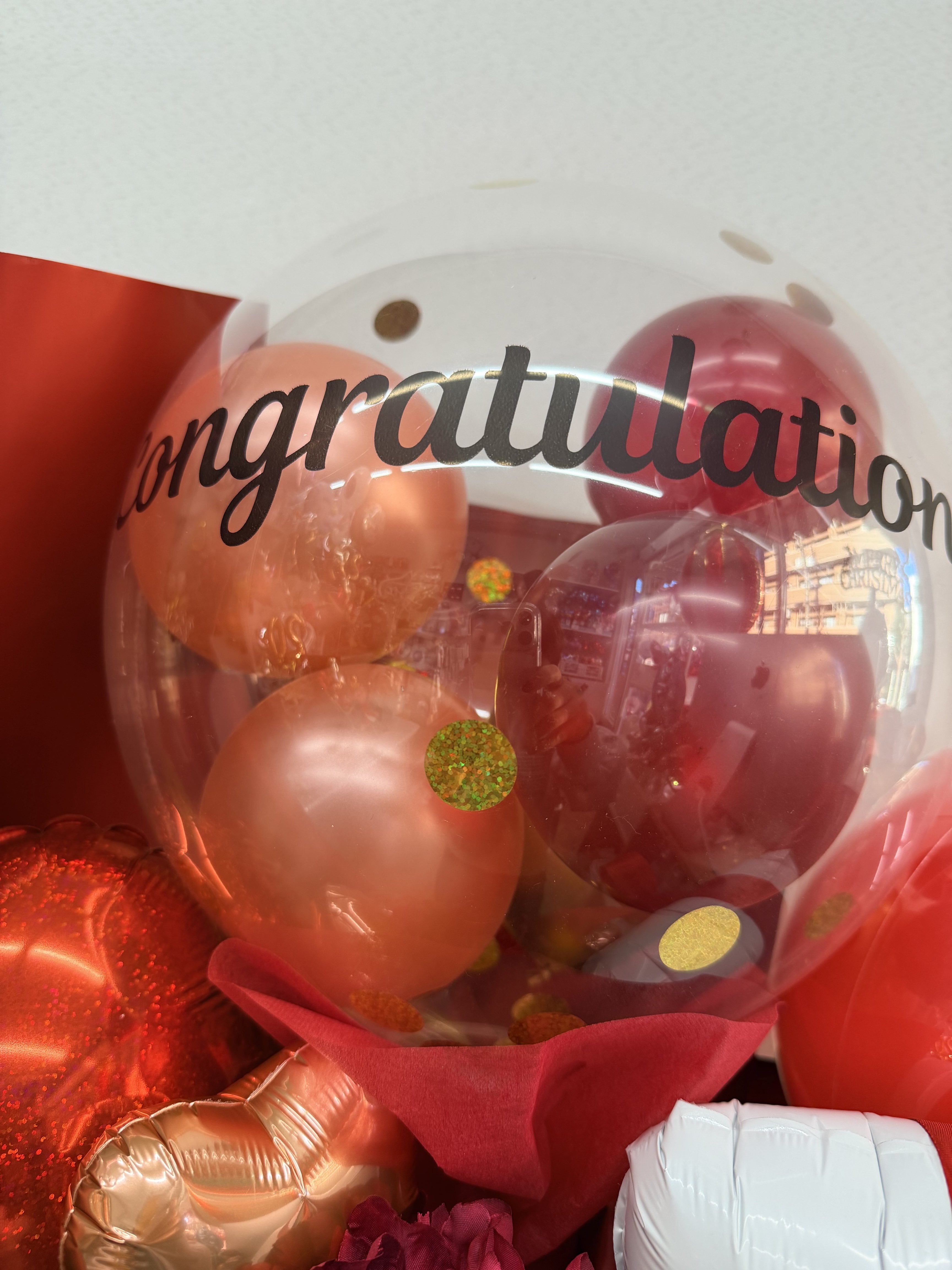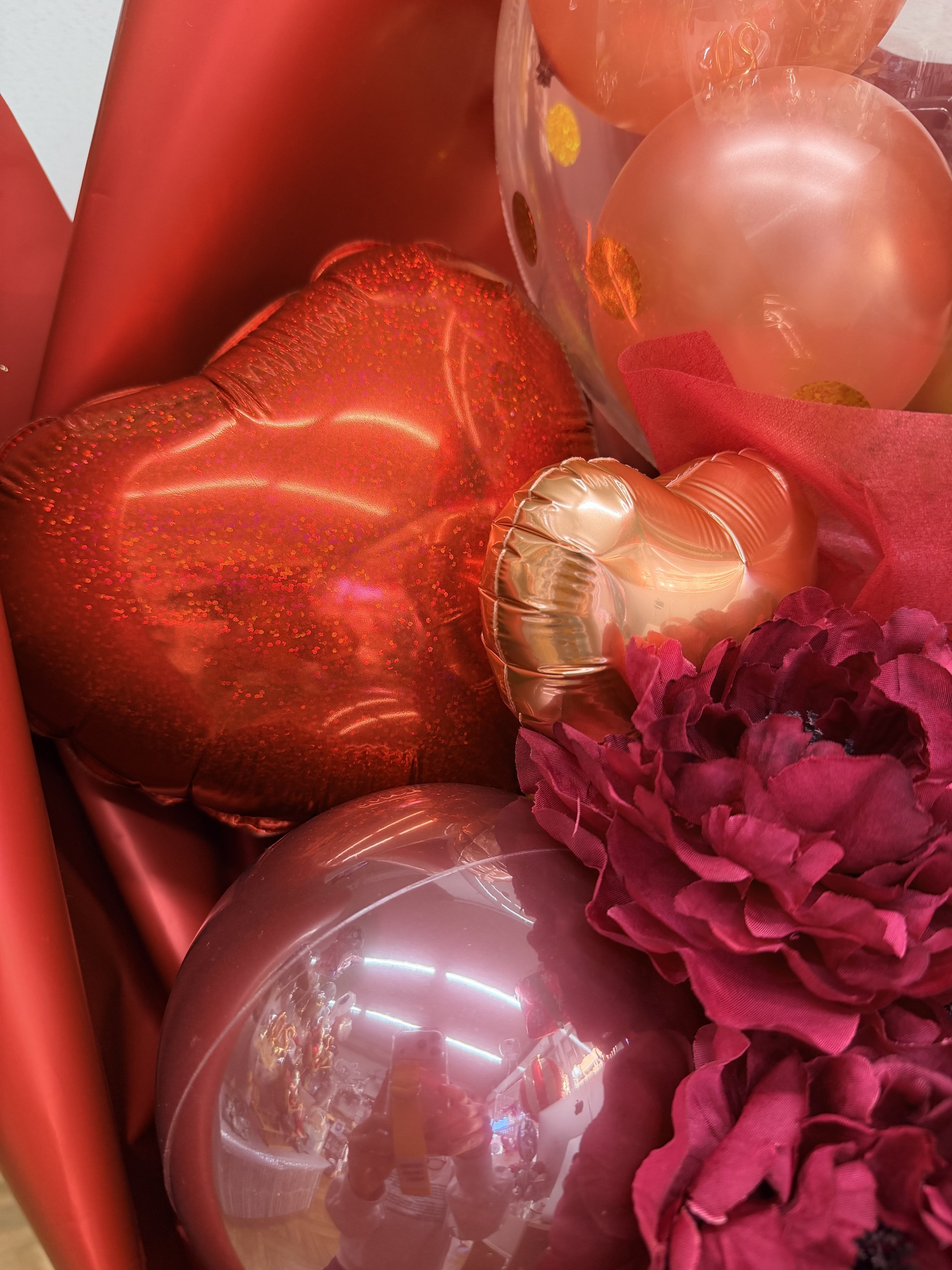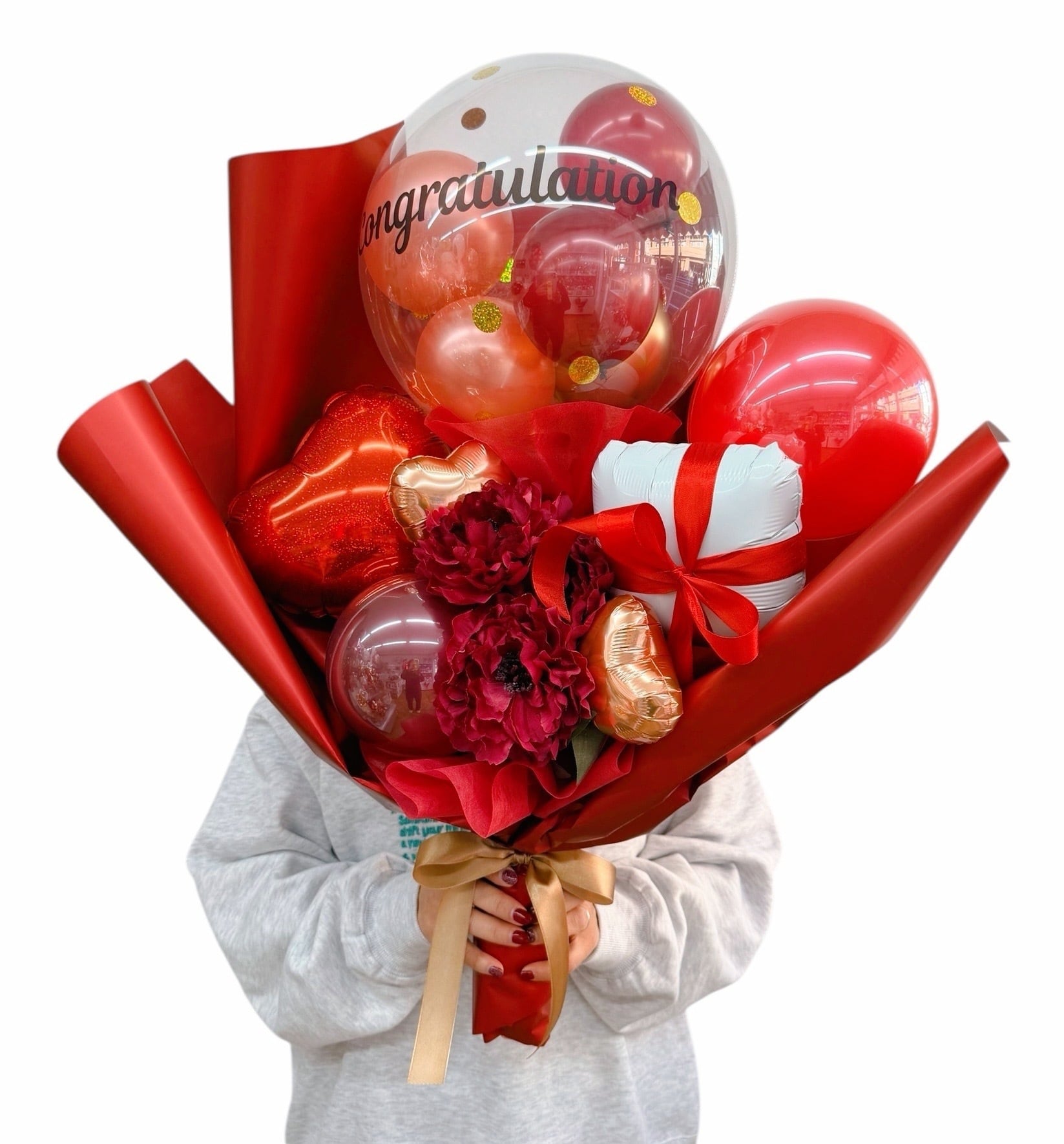 バルーンとアーティフィシャルフラワーを使用したバルーンブーケです。