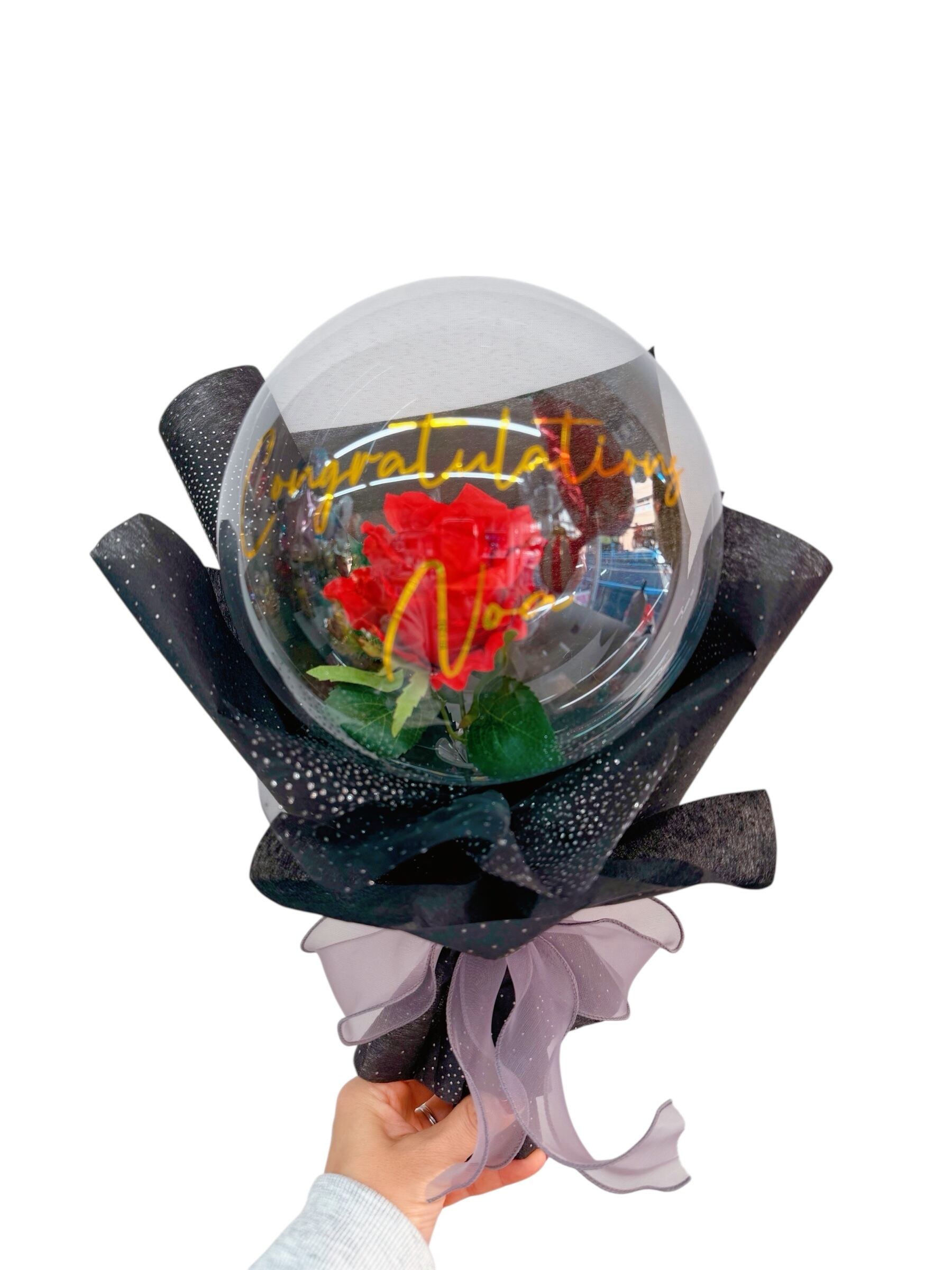 卒業、成人祝いにふさわしい、上品で洗練された雰囲気のバルーンブーケ。